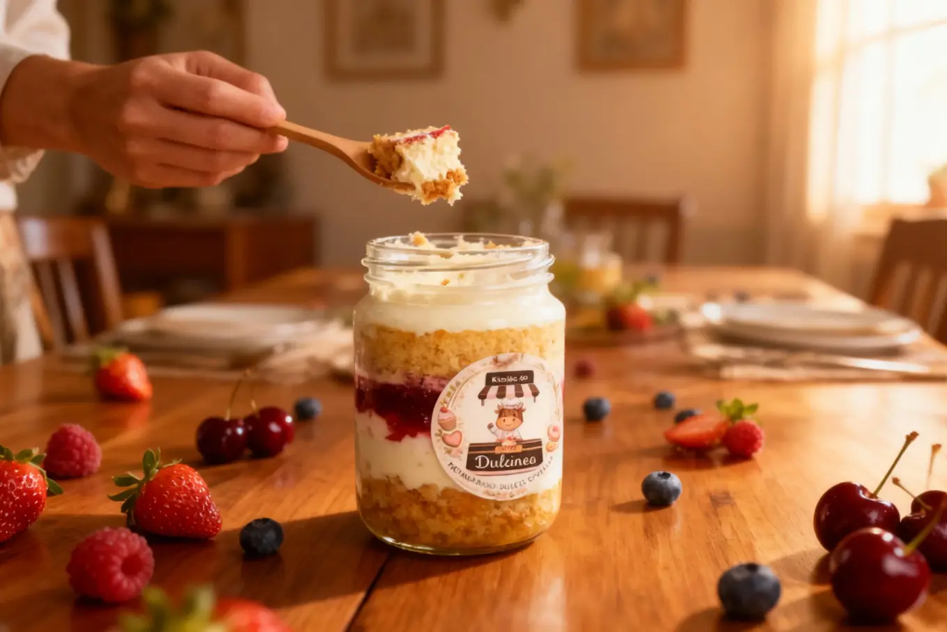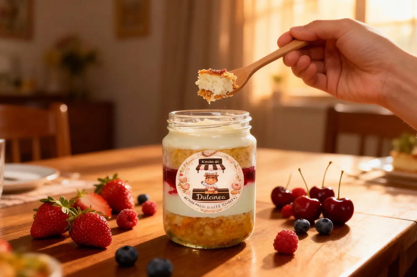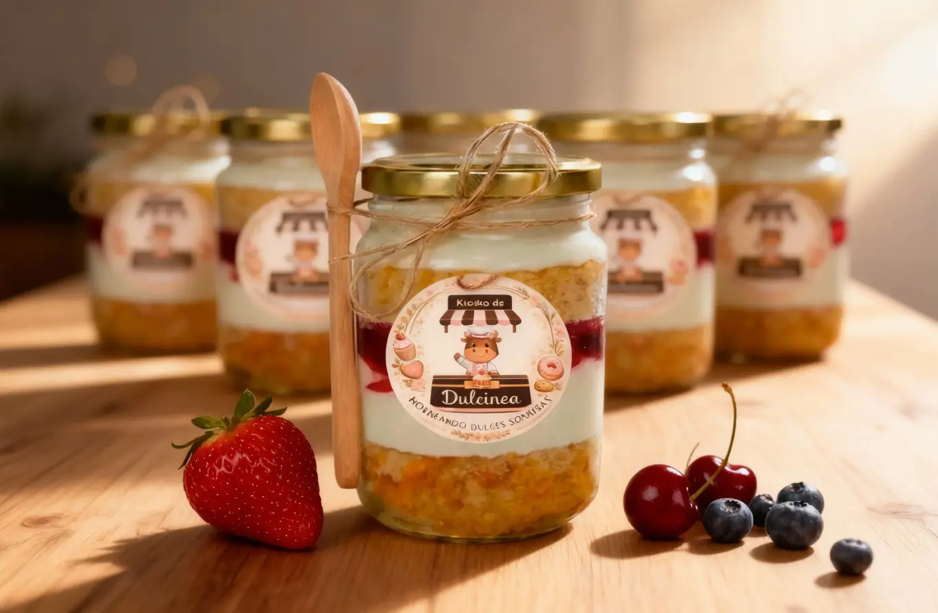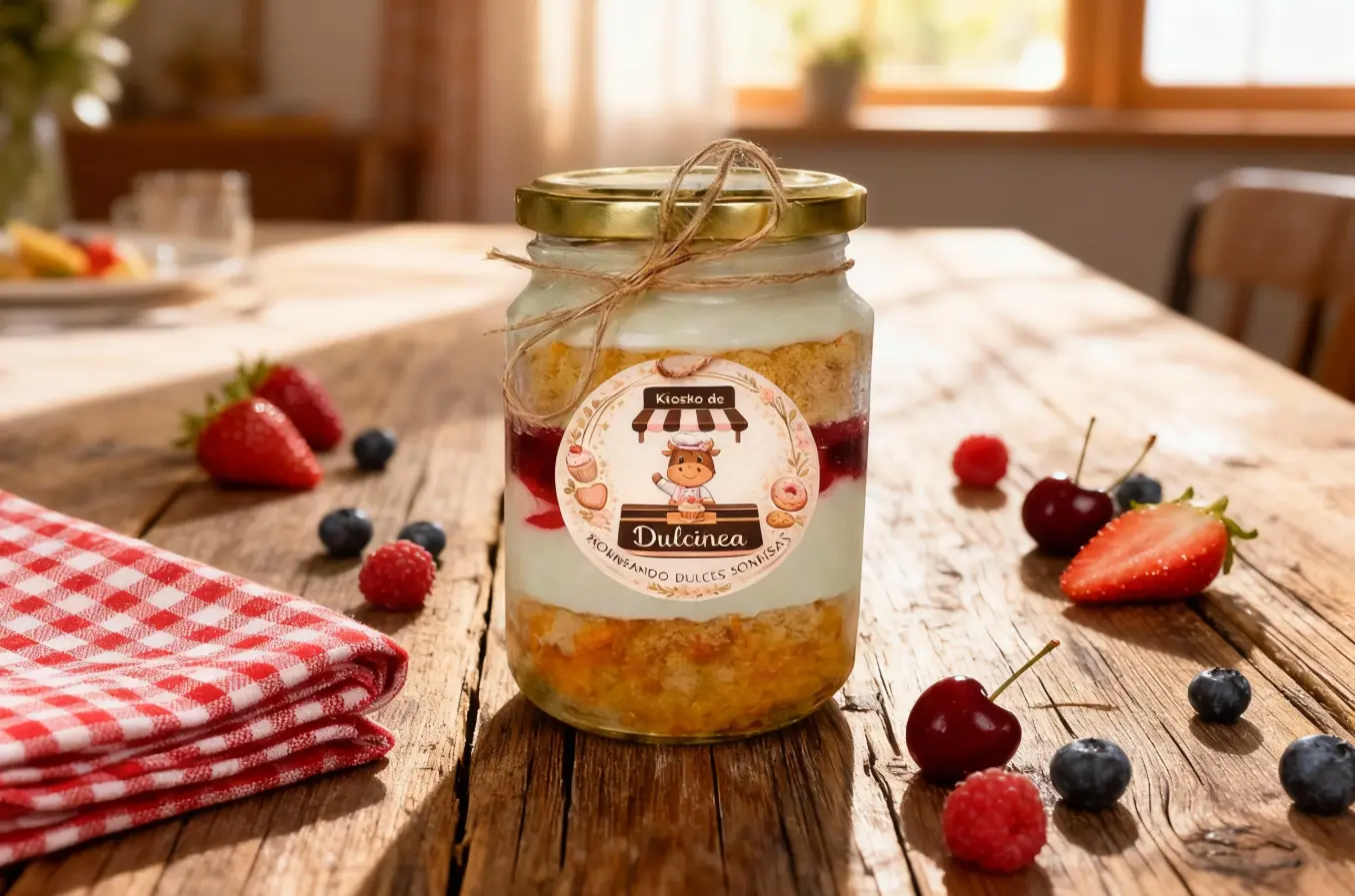 Un postre en vaso irresistible con suaves capas de bizcocho (vainilla o chocolate), crema de queso delicadamente batida y rellenos que conquistan el paladar: mermelada artesanal de frutos rojos o Nutella